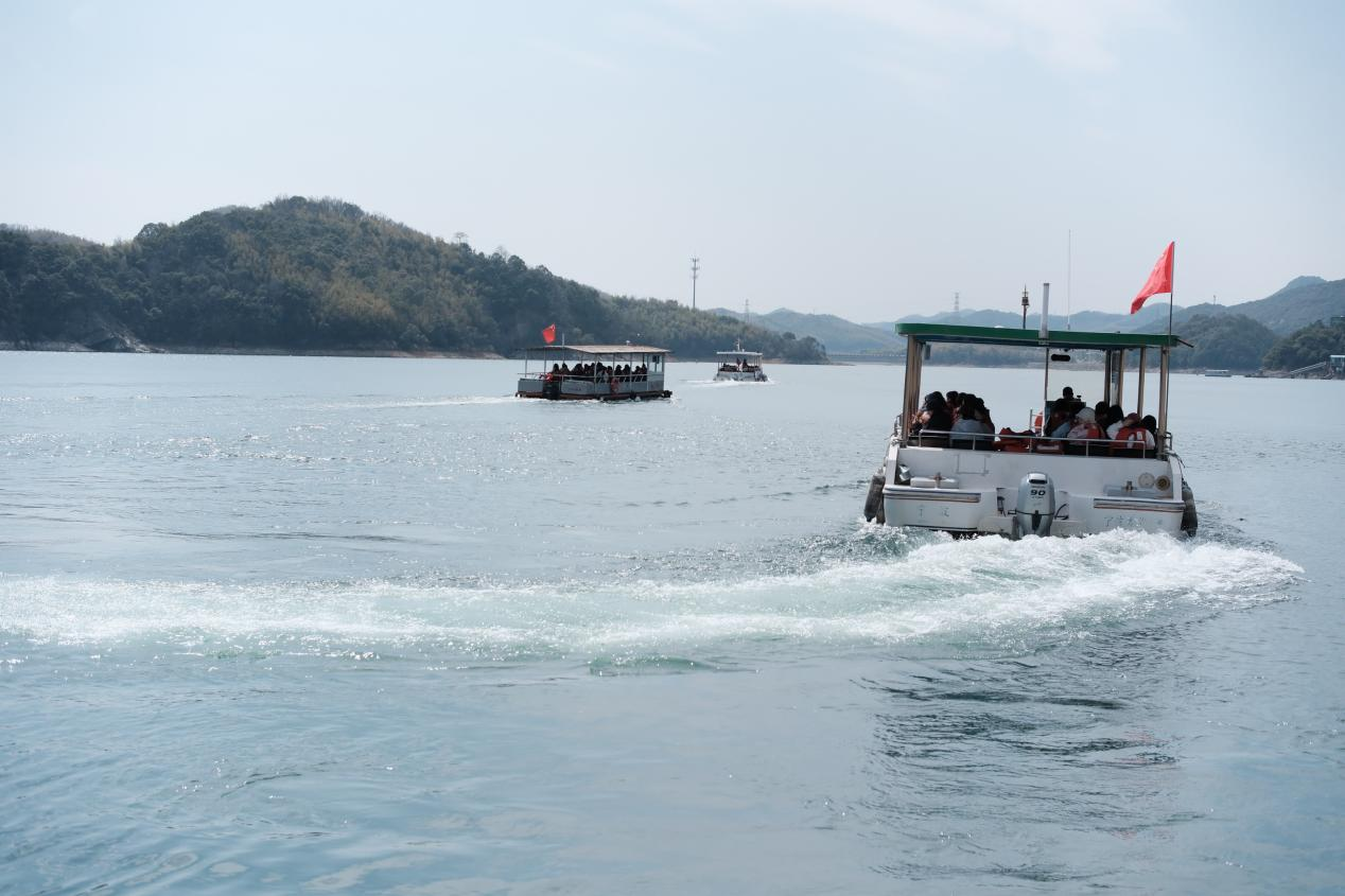 第一站,隊伍分批乘船登上湖心島——猴島,近距離觀賞野生獼猴群的靈動可愛。島上不僅有“龍女獻珠”“九龍神龜”等人文景觀,更有獼猴嬉戲,引得大家紛紛拿出手機拍照留念。漫步環(huán)島小道,湖光山色盡收眼底,微風拂面,令人心曠神怡。