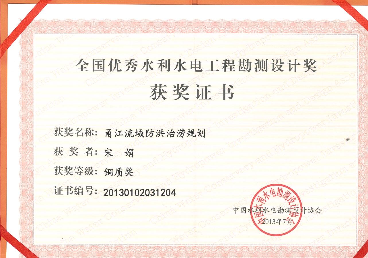 全國優(yōu)秀水利水電工程勘測設(shè)計獎