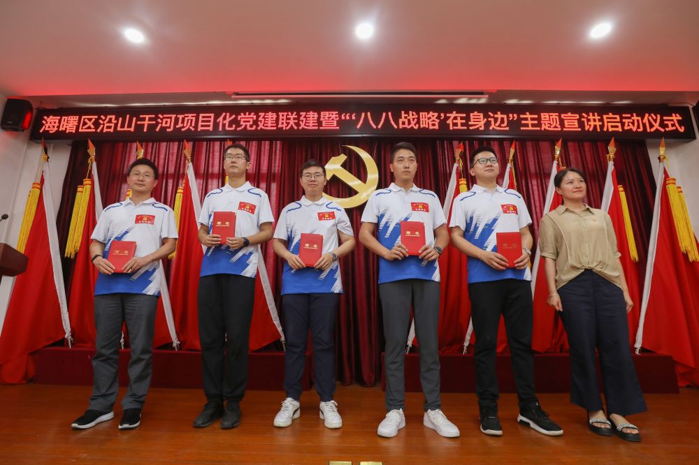 近日,海曙區(qū)直機(jī)關(guān)工委和區(qū)水利局以“五最黨建”為引領(lǐng),在集士港鎮(zhèn)岳童村文化禮堂舉行沿山干河項(xiàng)目化黨建聯(lián)建暨“‘八八戰(zhàn)略’在身邊”主題宣講啟動(dòng)儀式,我院作為沿山干河項(xiàng)目參建單位、活動(dòng)的承辦方參與了啟動(dòng)儀式。我院黨總支書記、副院長(zhǎng)王洪霞,工程設(shè)計(jì)項(xiàng)目組及青年黨員代表十余人參加了上述活動(dòng)。