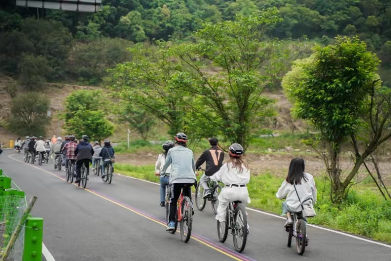 騎行環(huán)節(jié)中,小伙伴們在綠水青山間放松身心,自由交流,開啟了一場輕松愉悅的青春之約?;顒游猜?,小伙伴們在西岙水庫合影留念,互相添加聯(lián)系方式,更進一步交流了想法、拓寬了社交圈。