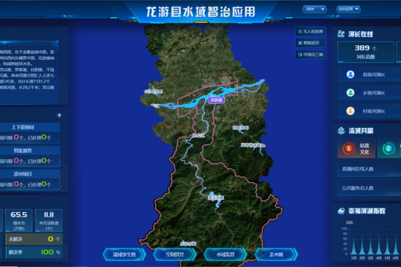 值得一提的是,龍游通APP同步上線“親水圈”服務(wù)模塊,清晰呈現(xiàn)親水騎行、垂釣、露營等產(chǎn)品,提供便捷可靠的均質(zhì)化水利公共服務(wù),并通過“瀫水云直播”平臺,在鳳翔洲、小溪灘、六春湖等地24小時展示親水圈慢生活實況,打造智慧透明的云端管護和快捷服務(wù),增強了河湖治理的社會共識和參與度。