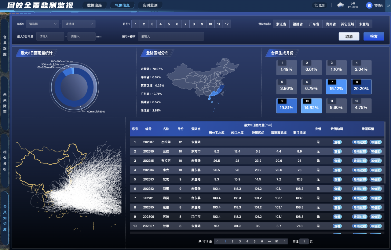 周皎全景監(jiān)測監(jiān)視模塊臺風知識庫